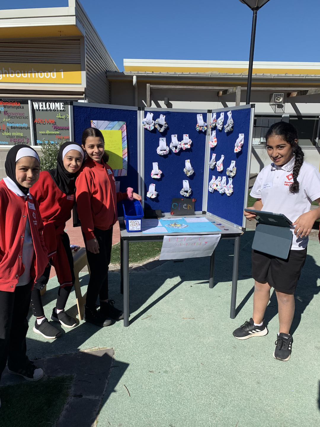 The Business Fair at the end of Term 2 was highly sucessful, with most of our stalls selling out in the first half hour of the fair. Thank you to all of the students, parents and community members that came down and supported the business fair - and we're sorry if you missed out on the product you wanted to buy! Students spent time after the Fair counting up their money, paying back their 'float' and calculating their profit. Combined, the students made enough money to take the whole neighbourhood to the movies next month!