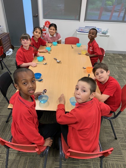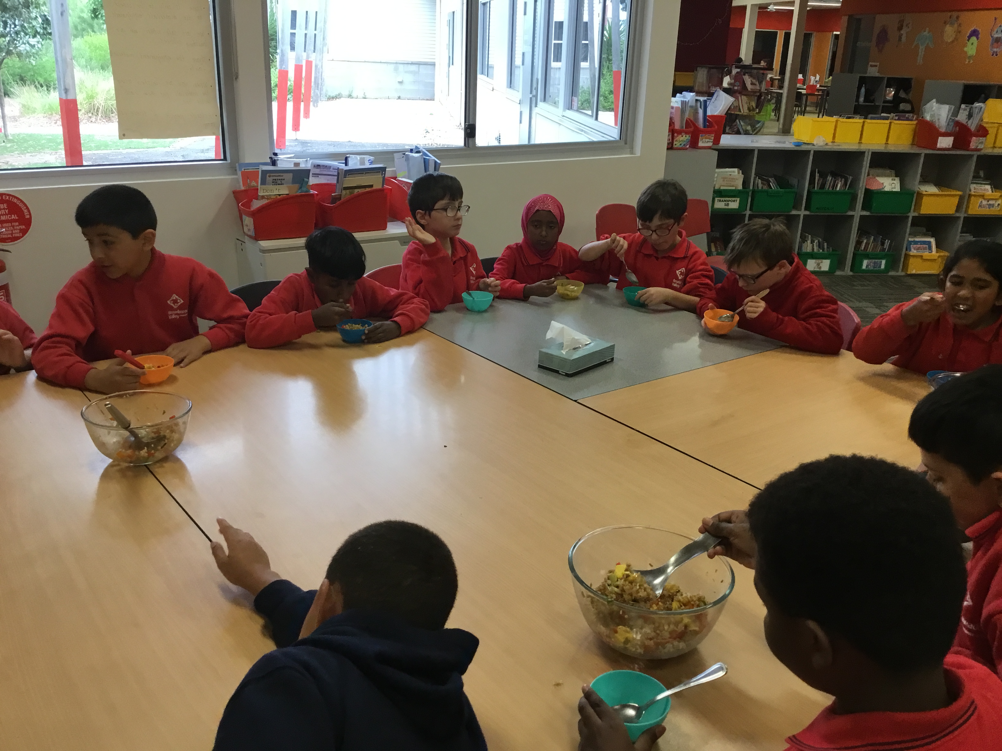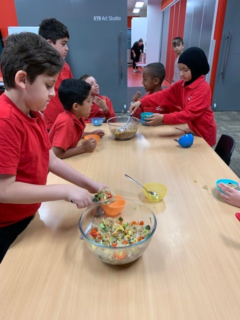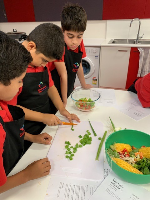 In the kitchen, they have been learning about hygiene and the importance of washing their hands before preparing food. This week, they had a go at chopping vegetables and using a frying pan to create a delicious meal of ‘Vegetable Fried Rice’ to share as a class. They will be furthering their knife skills and stir frying technique next week when we make a vegetable stir fry.