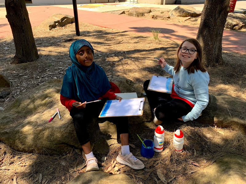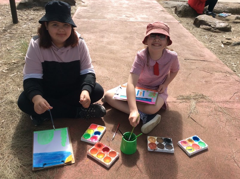 During these first few weeks of term four, the weather has been kind to us, so we have been able to enjoy our beautiful school grounds. We’ve moved the art room outside! Students have been able to create their artworks while enjoying our wonderful outdoor environment.