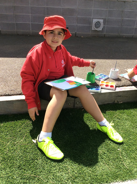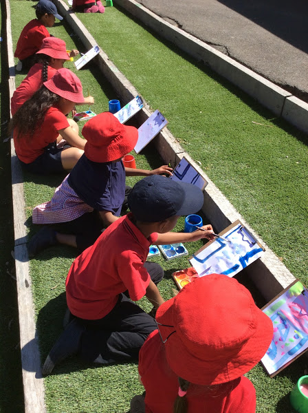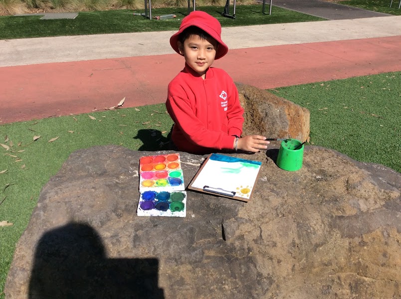 In Learning Neighbourhood 2, students have been learning how to create their name using graffiti letters. They are now experts in doing bubble writing! We also have had lots of fun painting outside with watercolours. Students were free to paint anything that they could see. Please have a look at the photos and see if you can guess what they were looking at.